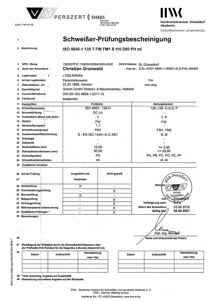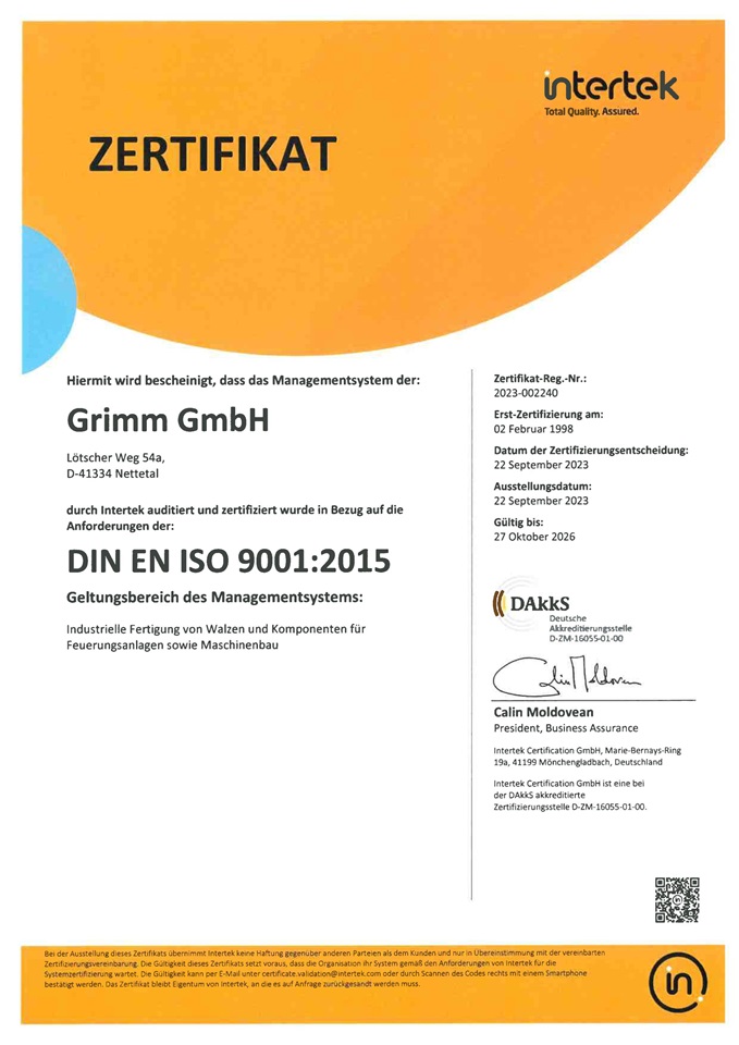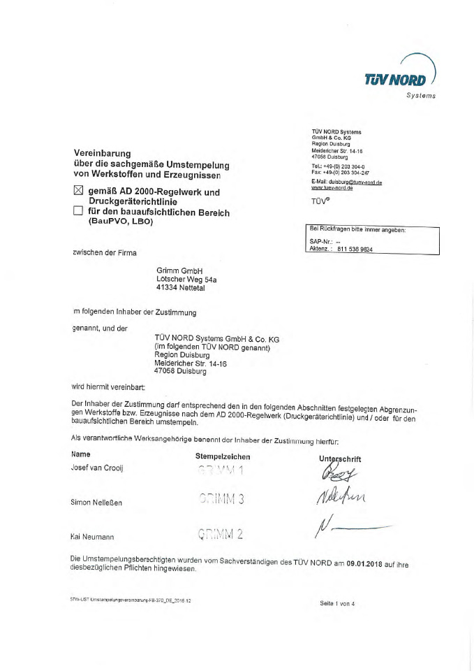 Die GRIMM GmbH wurde 1996 in Nettetal gegründet und ist seit 1998 durchgehend ISO 9001 zertifiziert.